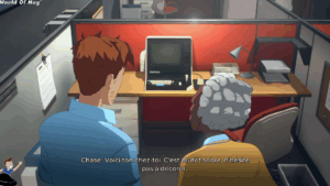 Les phases « film interactif » occupent une bonne moitié du jeu et consistent à suivre Robert dans diverses situations (au bureau, en réunion, en soirée, …) et de participer aux conversations. Contrairement aux anciens jeux Telltale, il n’y a pas ici de phases d’exploration en 3D, on est spectateur de l’action mais acteur dans les dialogues. Et ce n’est pas plus mal comme renouveau.