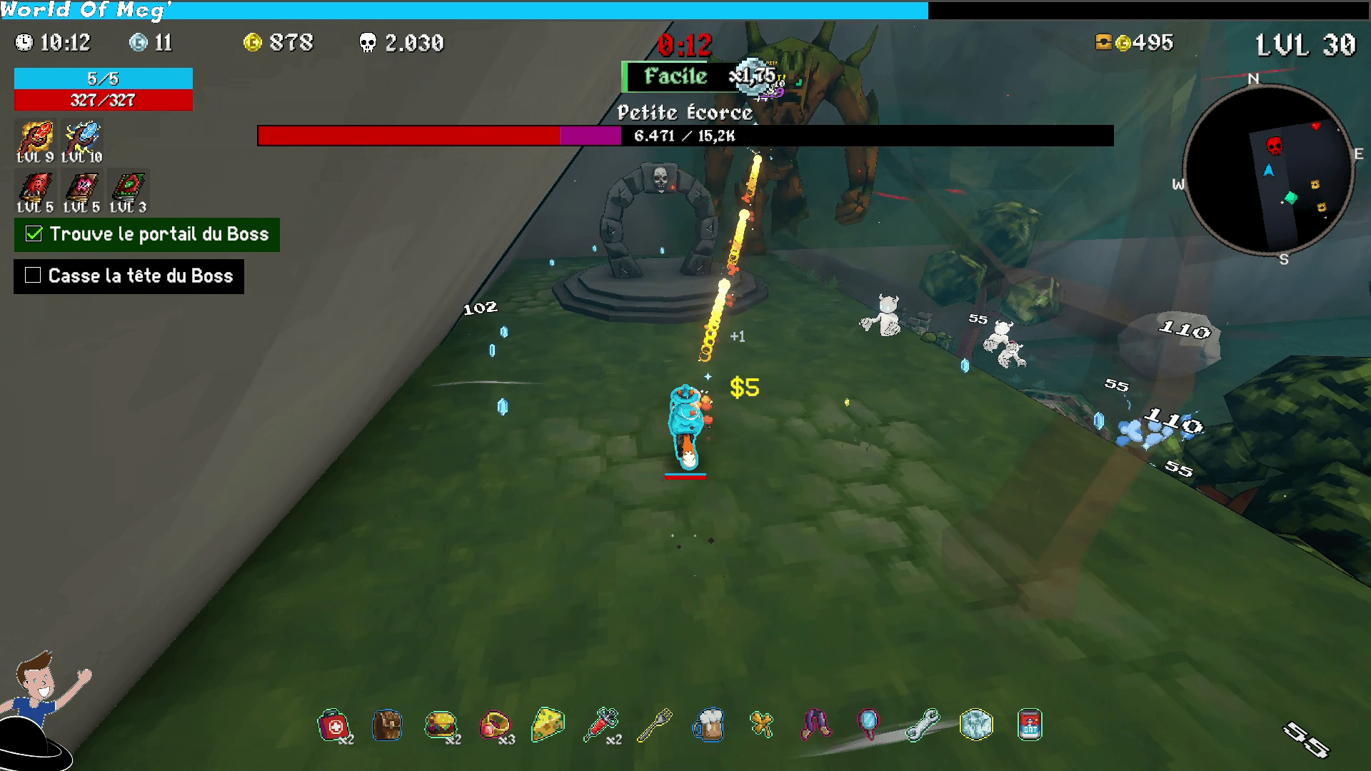 Un « Vampire-survivor » like mais cette fois-ci en 3D avec des twists par rapport à la formule de base comme le fait de devoir explorer le niveau pour trouver le boss et l’invoquer, des sanctuaires à activer et d’autres encore.