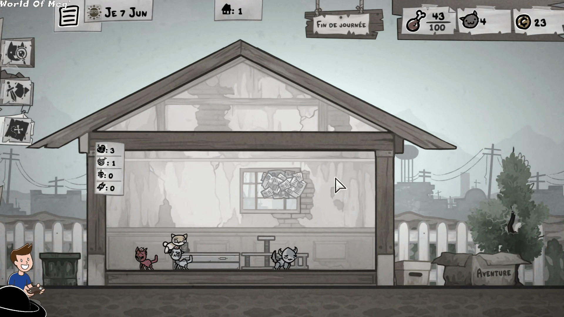 Notre maison n’est pas très grande mais elle contiendra vite pas mal de chats. Ceux qui sont rentrés d’une aventure sont désormais des chats retraités qui ne peuvent plus partir en mission, mais il y a aussi des chats errants qu’on peut récupérer mais surtout il y a les chatons.