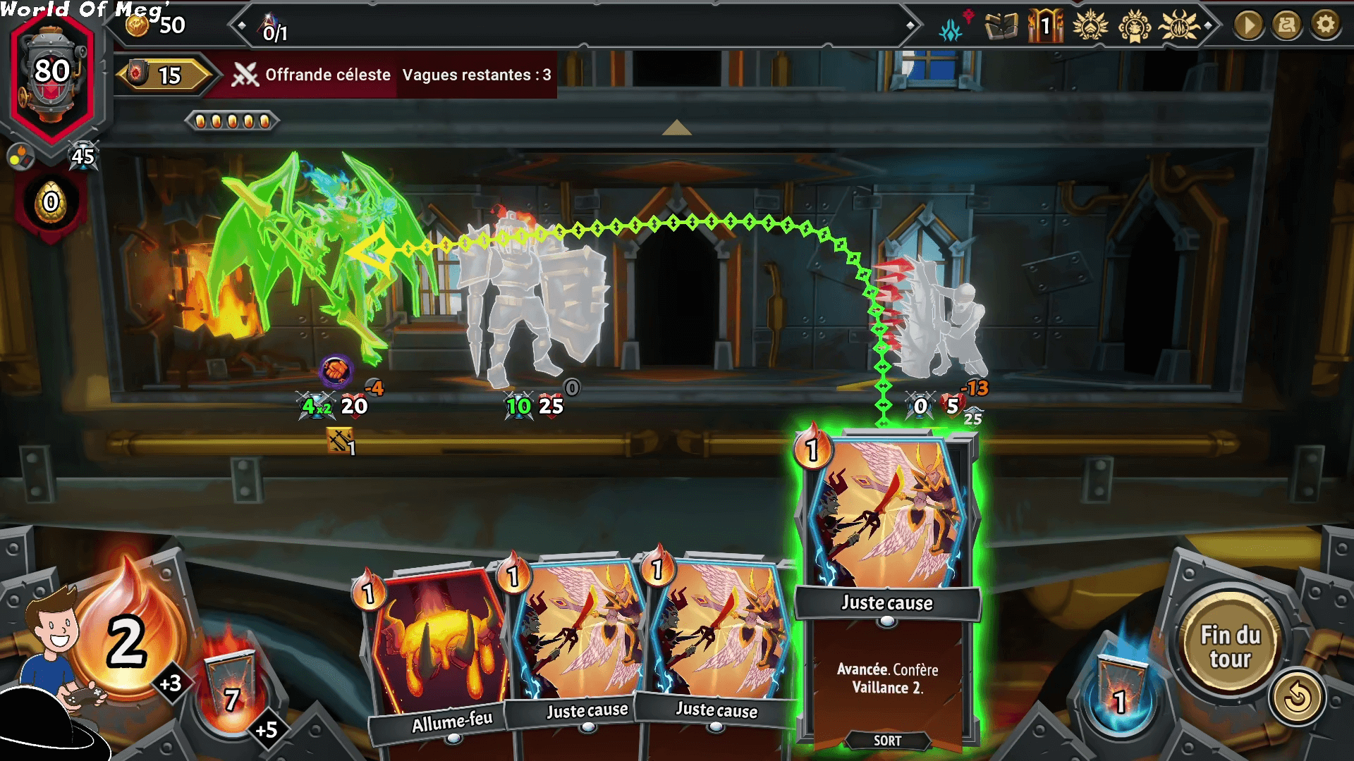 Il faudra vite créer des synergies en plaçant par exemple une créature faible mais résistante devant une autre unité plus fragile mais puissante, permettant à la première d’encaisser les coups pour protéger la seconde. Et il faut ajouter à cela des bonus et malus divers qui peuvent faire baisser l’attaque, perdre des points de vie ou qui au contraire, renforcent les unités à chaque tour.
