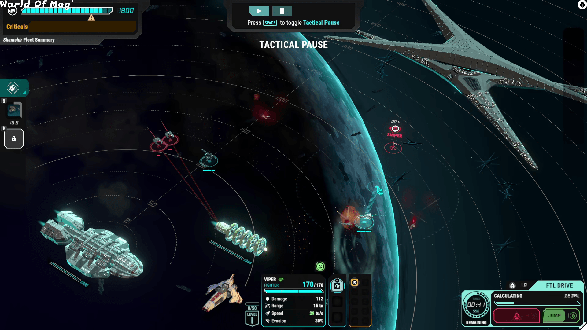 On est dans un jeu de stratégie, en temps réel avec la possibilité de mettre le temps en pause, où l’on dirige le commandant d’un vaisseau qui fuit après l’attaque initiale des Cylons. On se retrouve dans une zone de l’espace à devoir attendre que notre moteur permettant un saut dans l’espace se recharge pour qu’on puisse aller à la destination suivante, en cherchant à rejoindre le Battlestar Galactica et sa flotte.